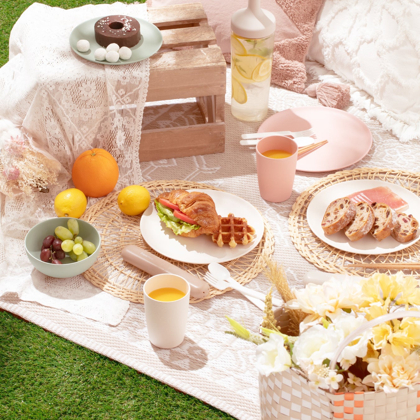 ピクニックやグランピングなどに使いやすい食器シリーズです。 バンブー、コーンスターチ、他ナチュラル素材を70%使用した環境に優しいアイテムです。