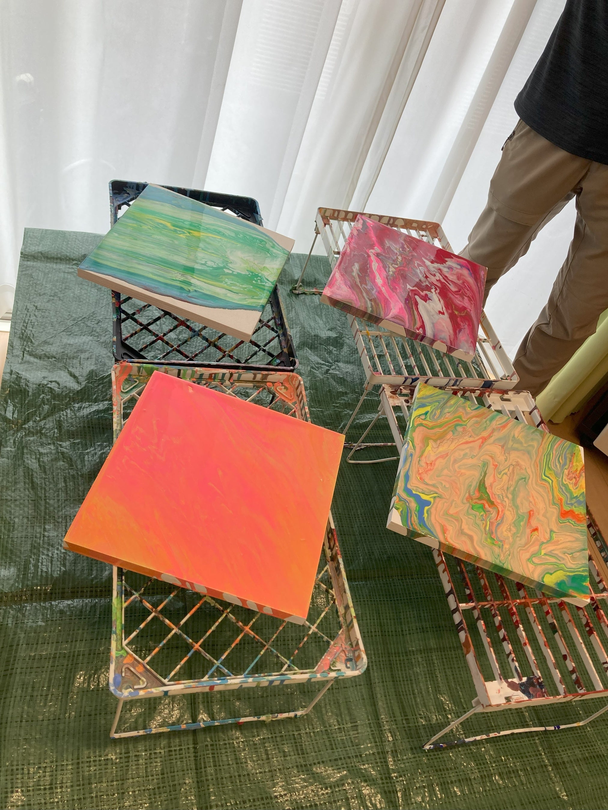 作品が完全に乾く際に、絵の具がひび割れのような状態になることもあるようで、完全に乾くまでどんな作品が出来上がるか、どきどき❤