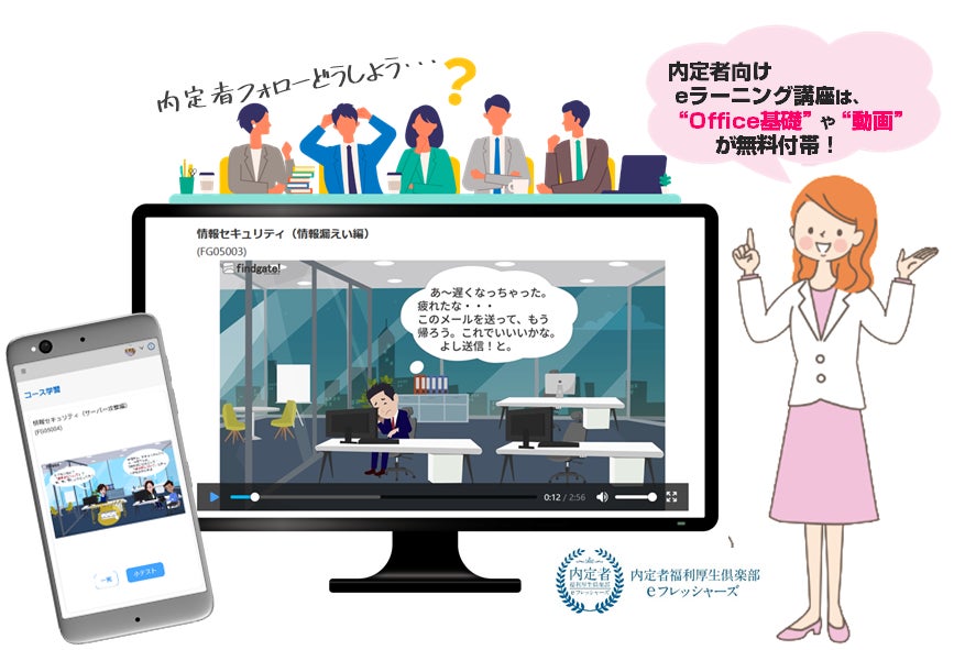 *3 「eフレッシャーズ」とは、SNS機能・グループウェア・eラーニング(動画)などが備わった人事担当者と内定者の不安・悩みを同時に解消する『内定者福利厚生倶楽部』に付帯するツールです