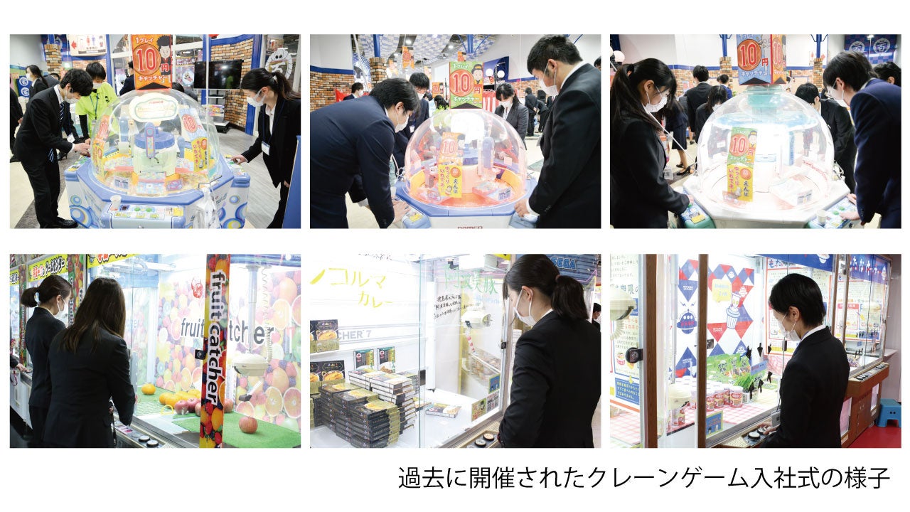 本年の入社式では、本年の入社式では、当社の主力事業であるクレーンゲームを取り入れた“体験型入社式”を実施。新入社員自らがプレイヤーとなり、景品獲得に挑戦するという、全国的にも珍しいユニークなプログラムです。