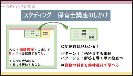 スタディングでは、科目間の知識のつながりを意識して学習を進めることで理解しやすい・記憶に残りやすい講義を展開しています。