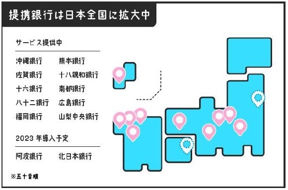 『Wallet+』は正式リリースから約5年9ヵ月(2022年4月)でアプリのダウンロード数が200万を突破しました。Wallet+をご利用いただける金融機関は10行に増え、全国各地の幅広いユーザーさまにご愛用いただいております。来年度にはWallet+導入銀行のエリアでは初となる東北の北日本銀行・四国の阿波銀行でのサービス開始を予定しており、提携銀行は日本全国に拡大しています。