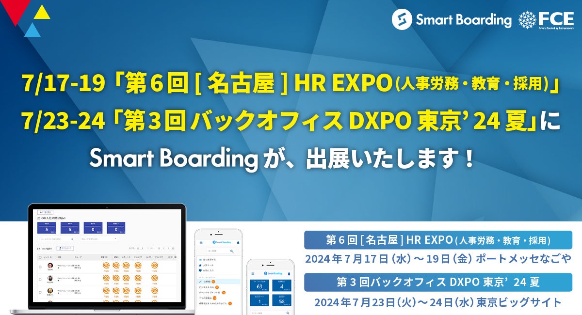 Smart Boardingが、7/17-19「第6回 [名古屋] HR EXPO(人事労務・教育・採用) 」 7/23-24「第3回バックオフィスDXPO東京’24夏 」に出展いたします!