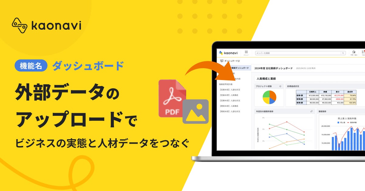 株式会社カオナビ(本社:東京都渋谷区、代表取締役社長 Co-CEO:佐藤 寛之、以下:当社)が提供するタレントマネジメントシステム「カオナビ」は、グラフなどを一つの画面上に配置する「ダッシュボード」において、外部データをアップロードできる機能を、2025年5月15日(木)より提供開始します。