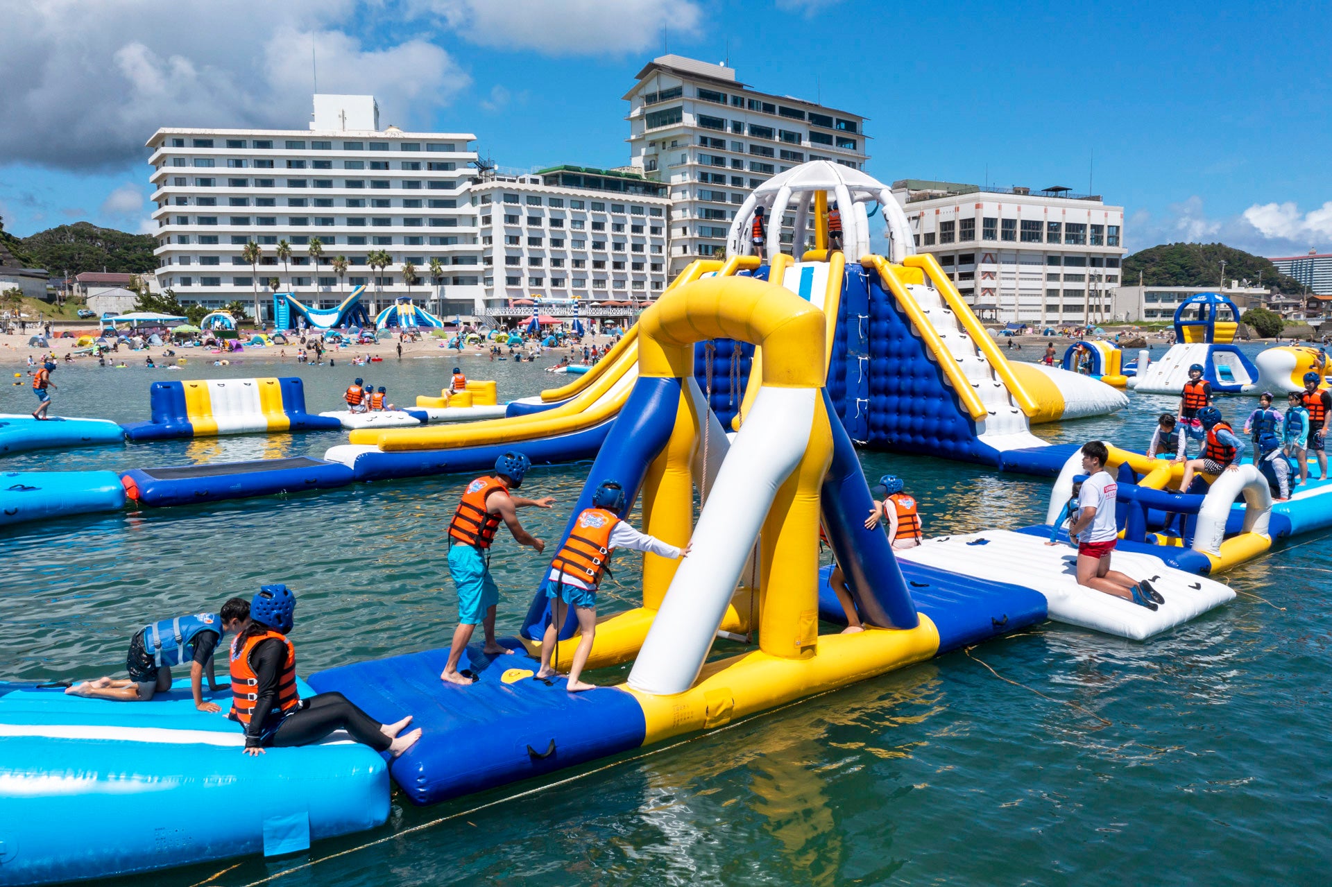 【三日月シーパークホテル勝浦】【三日月シーパークホテル安房鴨川】夏限定の巨大アトラクションが登場!2つのウォーターアイランド オープン