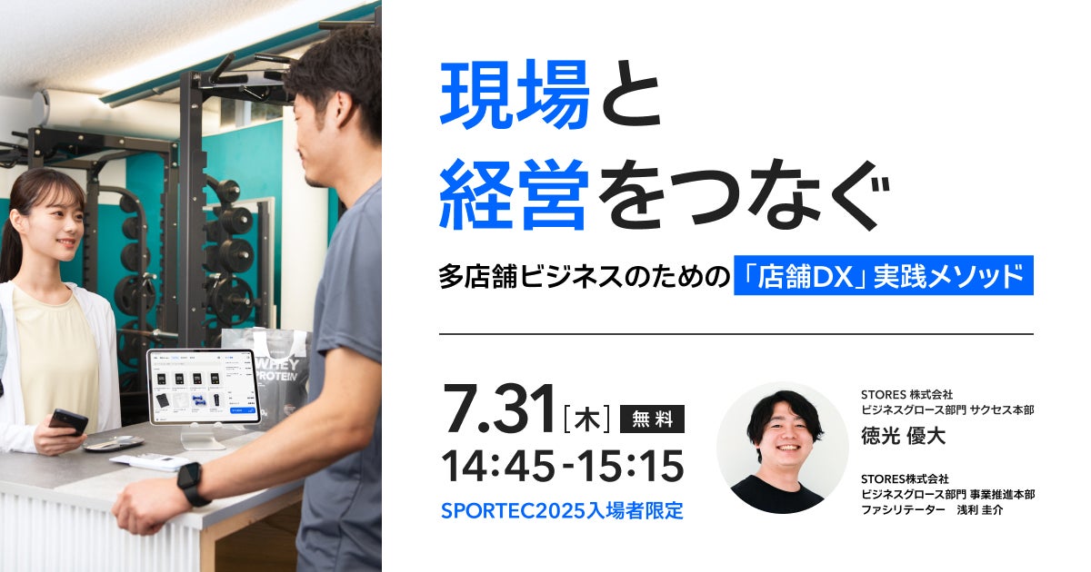 STORES 株式会社(以下、STORES)は、2025年7月30日(水)〜8月1日(金)に東京ビッグサイトで開催される日本最大の国際スポーツ・健康産業専門展「SPORTEC 2025」に出展します。STORES ブースでは、ジム・ピラティス・ゴルフスタジオなどのフィットネス事業者向けに、予約から決済、顧客管理までおこなえる「STORES 予約」の体験会と、複数店舗の運営や経営にも役立つセミナーを実施します。また、2025年3月に提供を開始した、予約システム・POSレジ・キャッシュレス決済など店舗運営に必要なサービスをまとめた新プランもご紹介します。