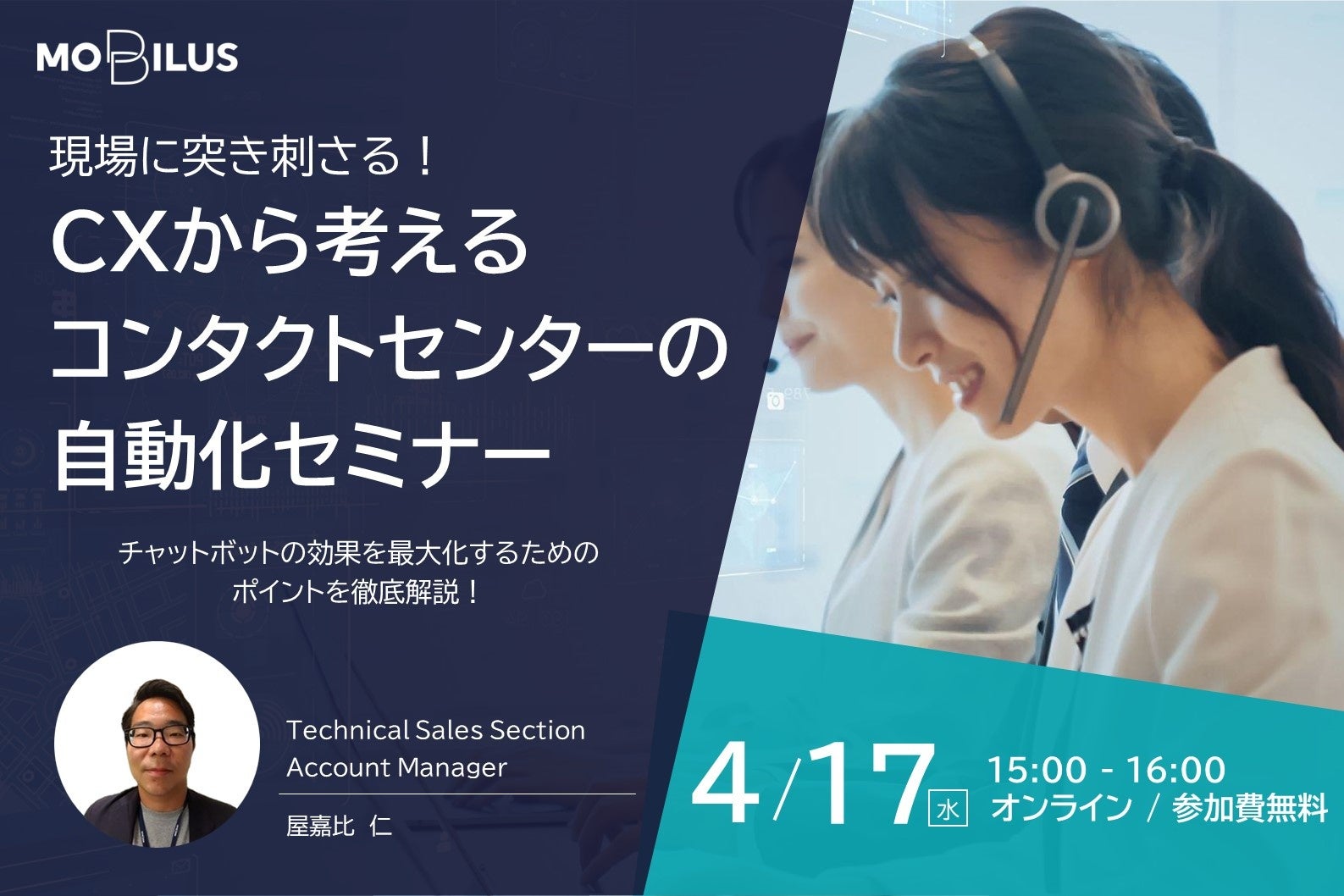 4月17日オンラインセミナー【現場に突き刺さる!CXから考えるコンタクトセンターの自動化~チャットボットの効果を最大化するためのポイントを徹底解説~】開催のお知らせ