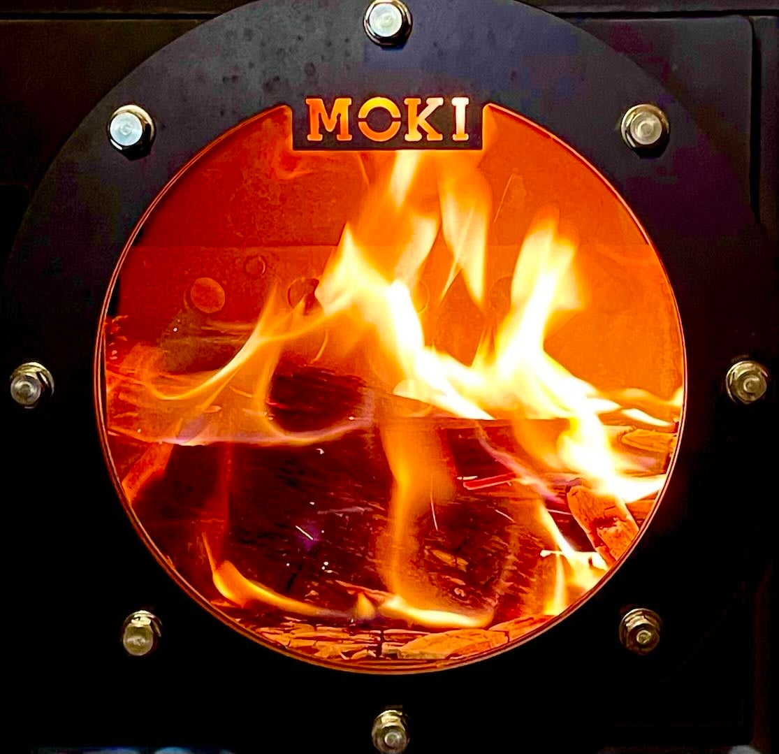 特許取得の「茂木プレート」による独自の燃焼方式が実現したサウナストーブ。三次燃焼や800℃の高温燃焼、素早い立ち上がりが特徴です。薪を選ばず針葉樹や竹も投入可。レトロな丸窓と特徴的な六角形で、一目見て「モキ」とわかるデザインとなっています。