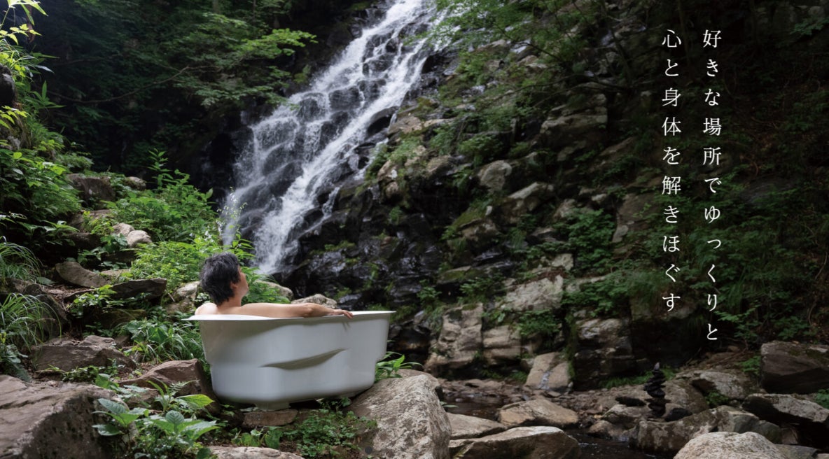 HAKOBUNÉはどこでも運べる癒やしの湯舟。自分のお気に入りの場所で、思いっきり自分だけの癒やし時間を楽しめます。なお、この商品はおもてなしセレクション2024や第12回LIFE×DESIGNベストリノベーション賞を受賞しています。