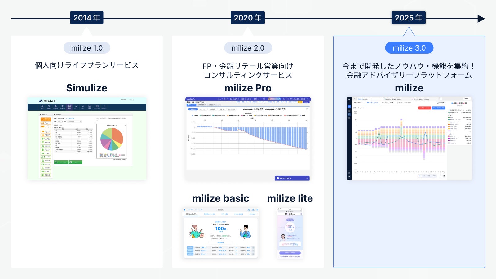 このサービスは、当社がこれまで個人向けに提供してきた「Simulize」や金融機関向けライフプランシミュレーションツール「milize Pro」で培った実績とノウハウを集約し、お客様の将来に関わる重要な意思決定を支援する統合的なソリューションとして進化させたものです。