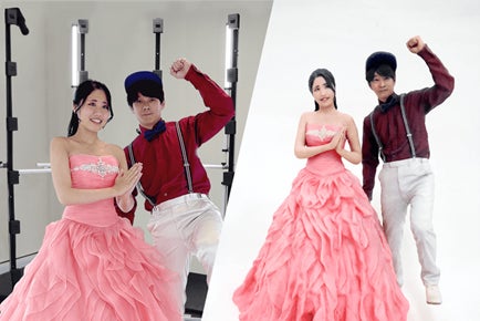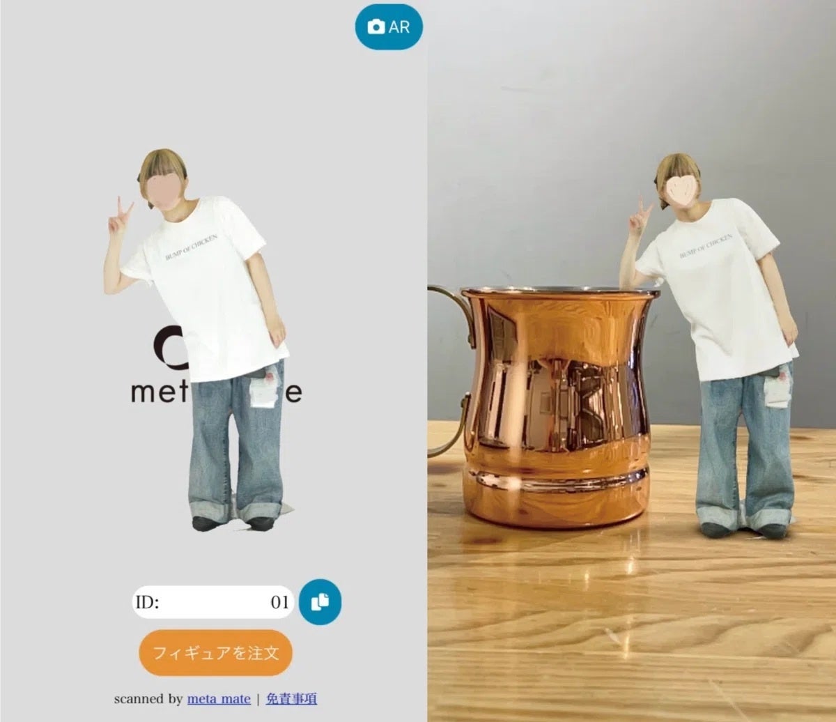 撮影後に付与される専用QRコードを読み込むと、スマートフォン上で自分の3Dデータを使った拡張現実コンテンツを体験可能。現実では撮れないツーショットやユニークなポーズを、スマホ画面上で楽しむことができます。