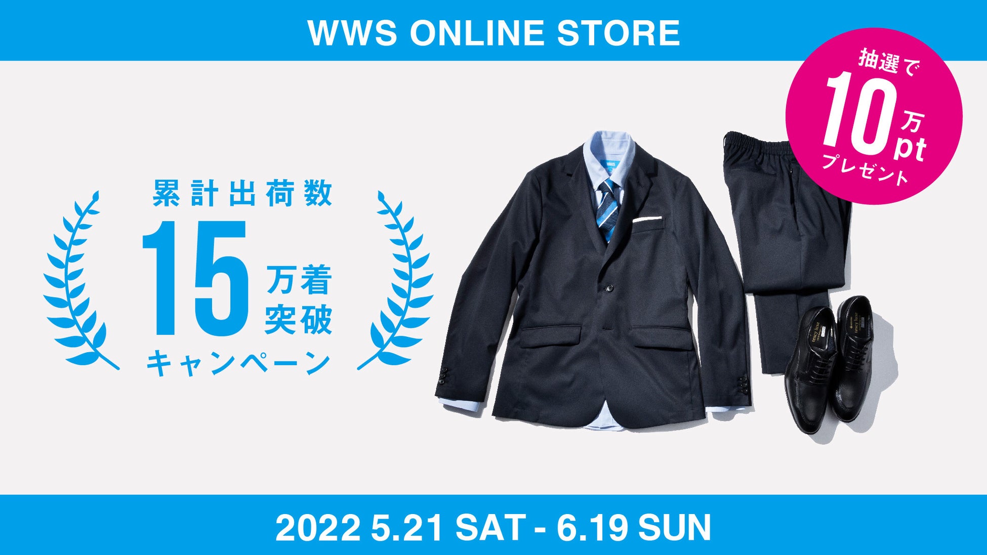 WWSは、2022年1月時点で累計出荷数15万着を突破いたしました。日頃よりご愛用頂いてる皆様に感謝を込めて、2022年5月21日(土)~2022年6月19日(日)の間、WWS公式オンラインストアにて抽選5名様に10万ポイントが当たる「累計15万着突破!10万ポイントプレゼントキャンペーン」を開催いたします。期間中ご購入したお客様を対象に、抽選5名様にWWSオンラインストアで使用できるポイント10万円相当分が当たります。購入金額10,000円(税込)ごとに応募口数が増加し、当選確率がアップします。対象商品はWWS公式オンラインストアで展開ししている全商品となります。