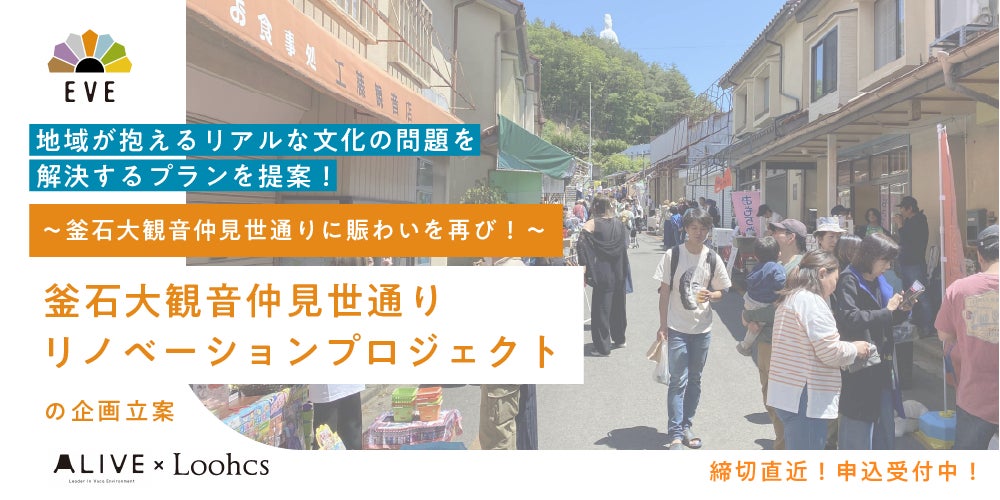 総合型選抜・AO入試専門塾のルークス志塾を運営するLoohcs株式会社(代表取締役 :嶺井 祐輝 以下「ルークス」)と、日本最大級の異業種混合型リーダーシップ開発プロジェクトを提供する一般社団法人ALIVE(代表理事:庄司 弥寿彦、以下「ALIVE」)は、社会課題をテーマに、高校生・大学生が協働して、課題解決を通じて学び、その後の人生について火をつけるプロジェクト「EVE(イブ)」の募集を開始します。