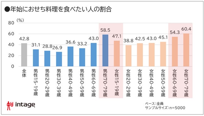 ・年始におせち料理を食べたい人は4割強。男性70代、女性60~70代で5割超え15-19歳女性でも47.1%