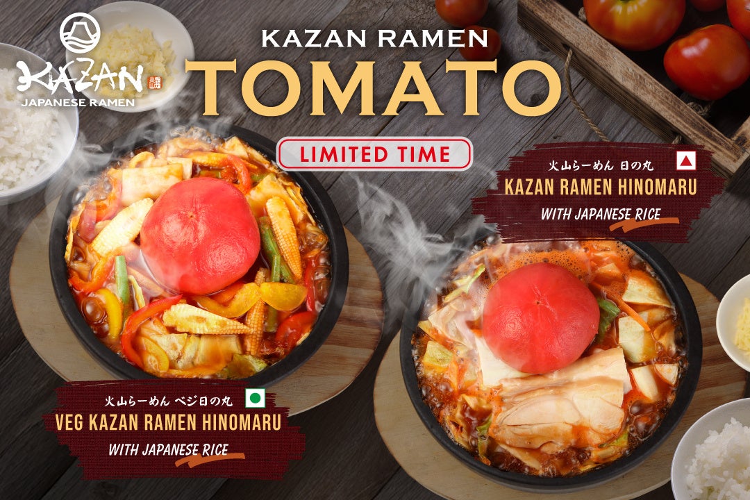 5月26日より期間限定で「トマト火山ラーメン」の販売を開始しました。鶏ベースのスープバージョンと、野菜のみから取ったベジタリアン用スープの2種類をご用意し、お客様のお好みに合わせてお選びいただけます。