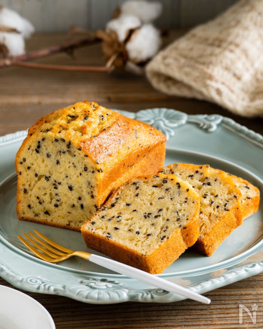 しっとりとした食感に、表面のこんがり焼き色がアクセントになったさつまいもケーキです。バター不使用でさつまいもの自然な甘みと香ばしさが口いっぱいに広がる、ヘルシーケーキです。黒ごまの風味が加わり、ほっと落ち着く味わいに。素朴で飽きのこない美味しさで、朝食やおやつにもおすすめです。