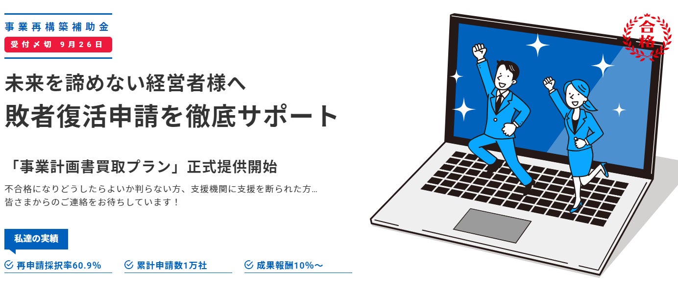 事業再構築補助金の「不採択事業計画書・下取りサービス」を開始。敗者復活申請を徹底的に支援いたします【先着100社】