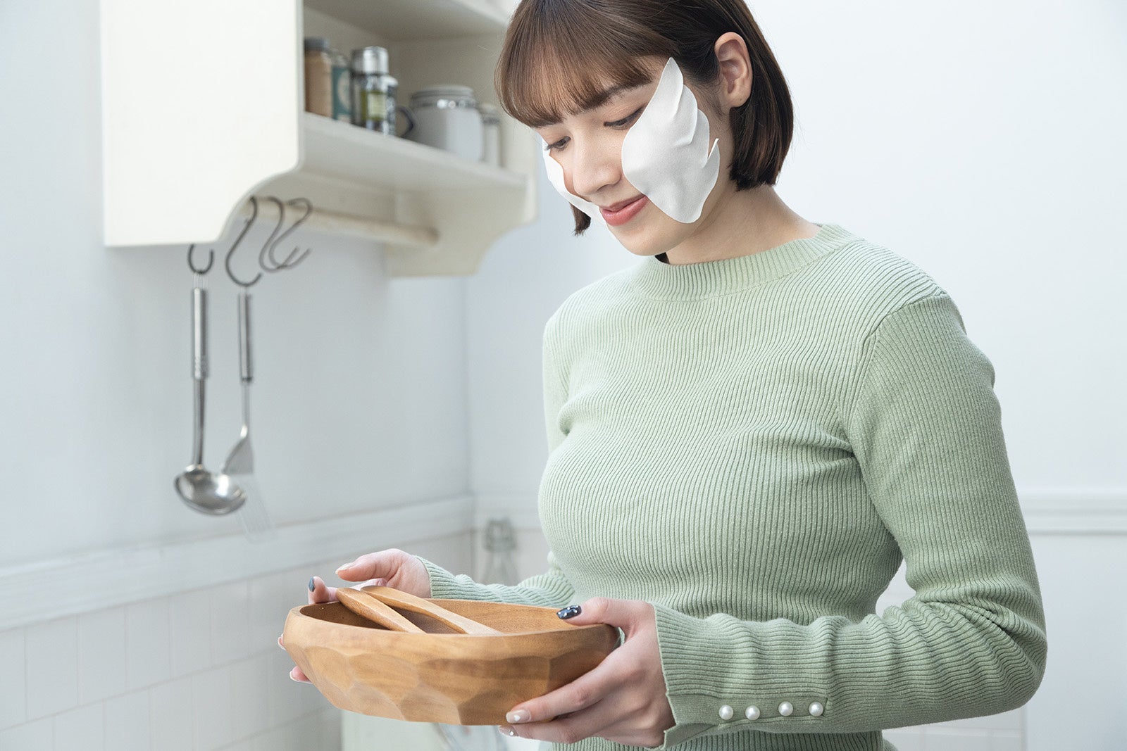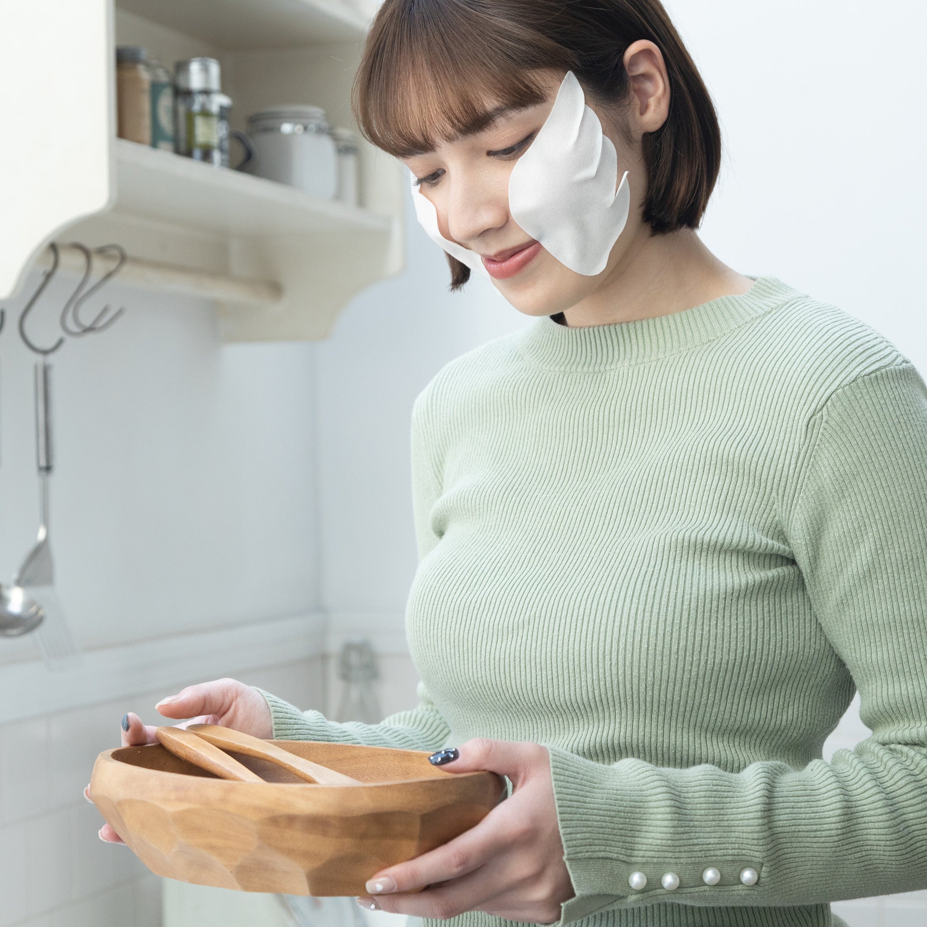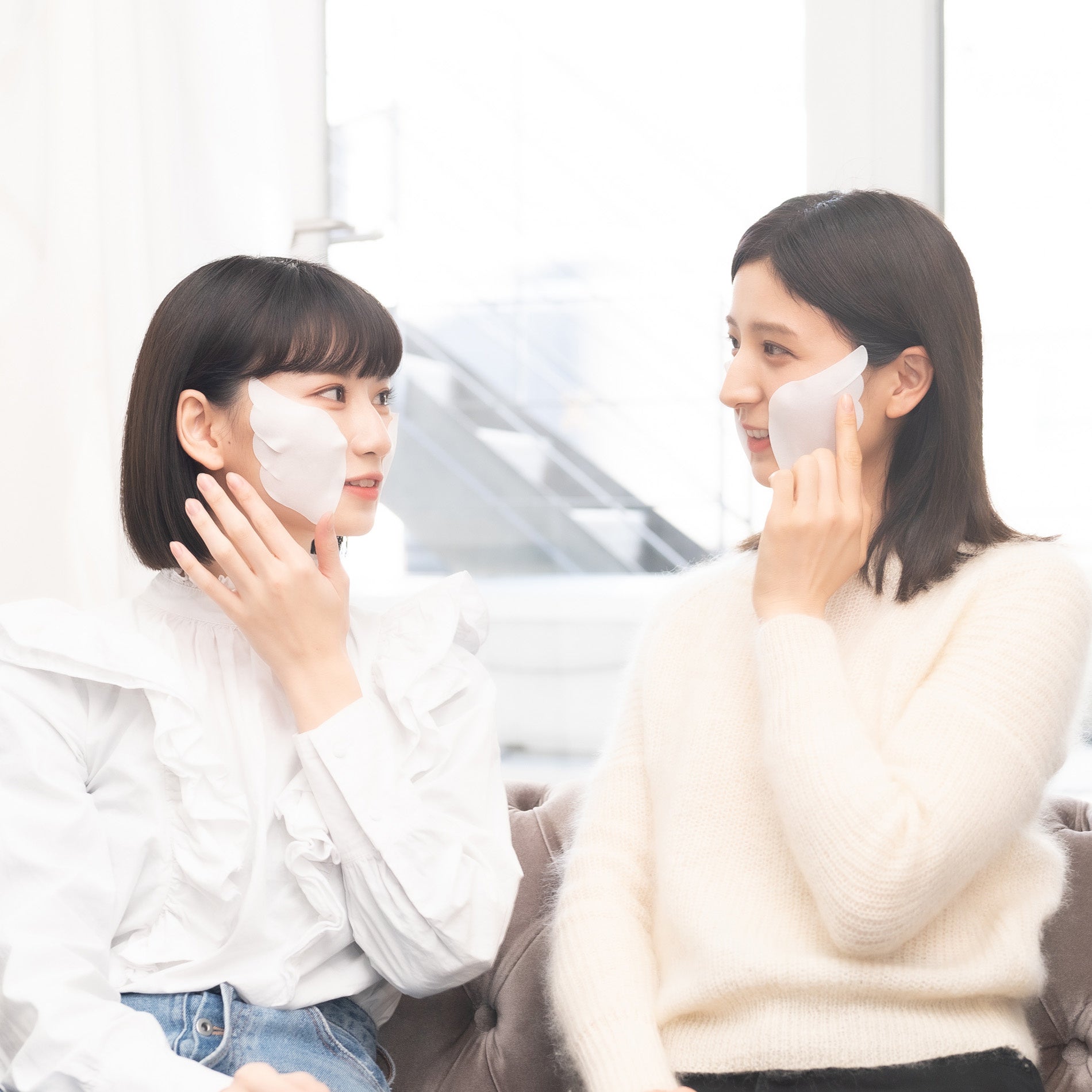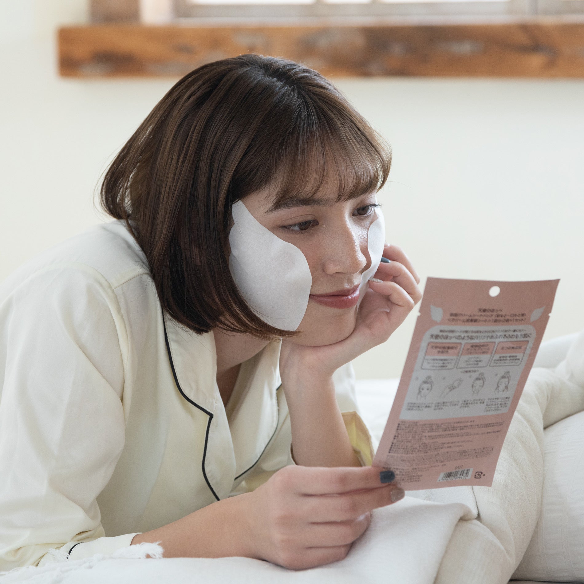 肌にあたる部分に塗られた美容クリームは、表面に浸潤してこないので効率よく肌に転写できます。さらに外側はさらさらの状態が保たれるので、家事をしながら、髪を乾かしながらなど、“ながら美容”にも最適。見た目もかわいく、お友達同士のお泊りなどでもおススメです。