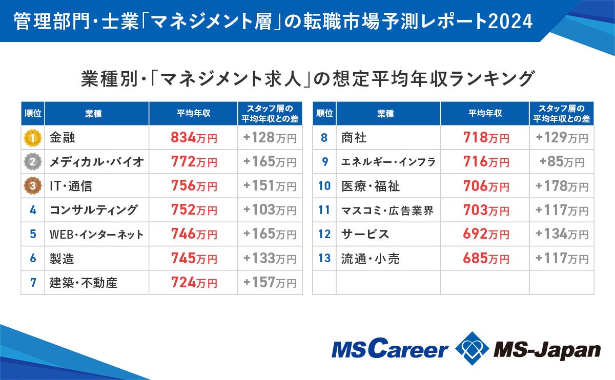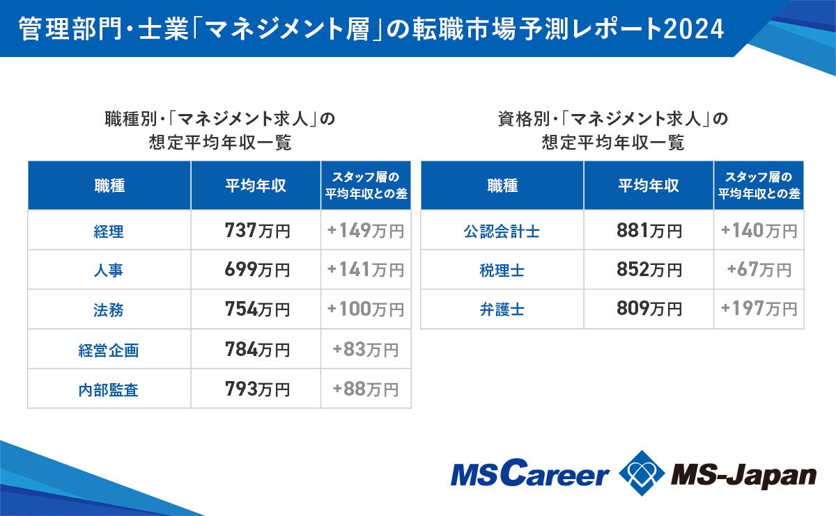 転職サービスMS Career、「マネジメント層の転職市場予測【2024】」を発表 平均募集年収は「732万円」で2024年は好条件化の予測