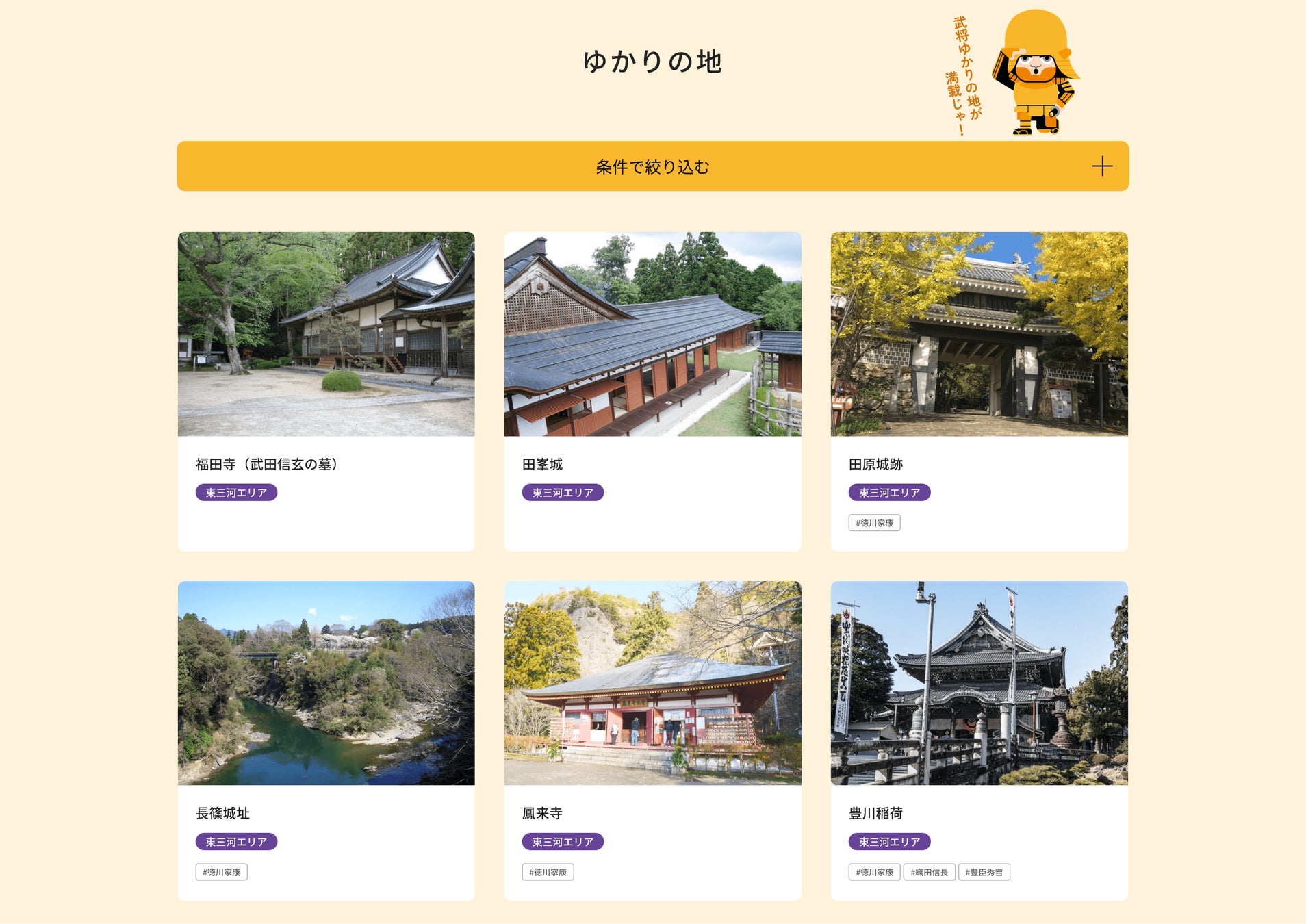 徳川家康を始めとする戦国武将ゆかりの地を巡る旅の情報収集に是非お役立てください。