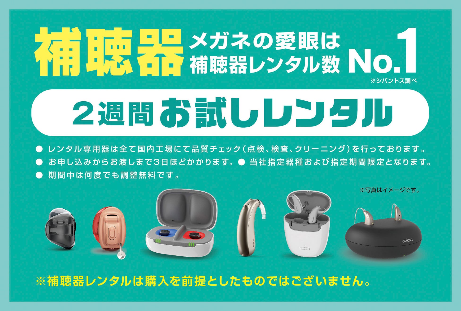 大好評の「愛眼補聴器レンタル」も実施しております。