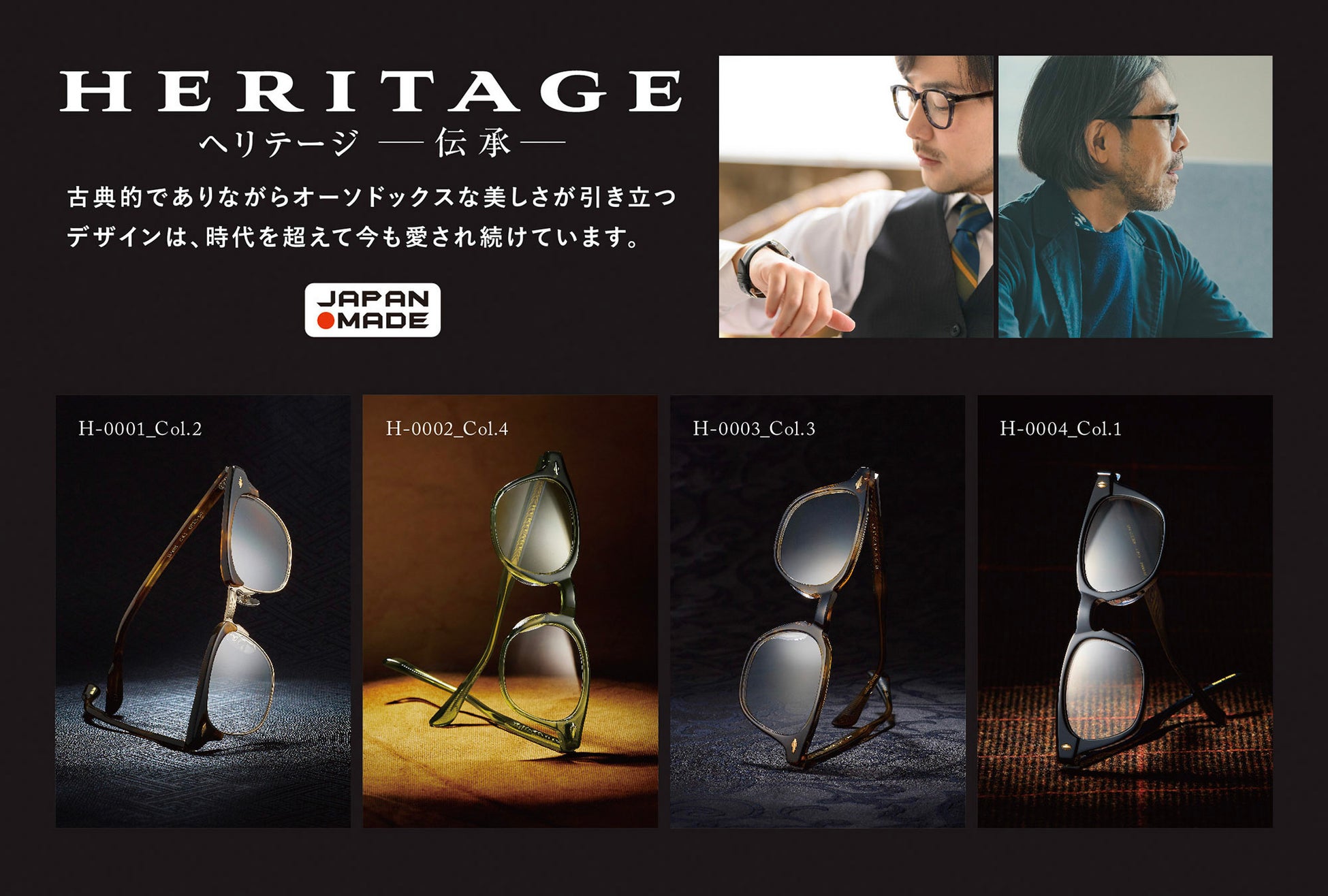 HERITAGE:時代を超えて愛されるクラシックデザインに、男心をくすぐる色合いをプラス。長く愛用したくなるアイウェア。