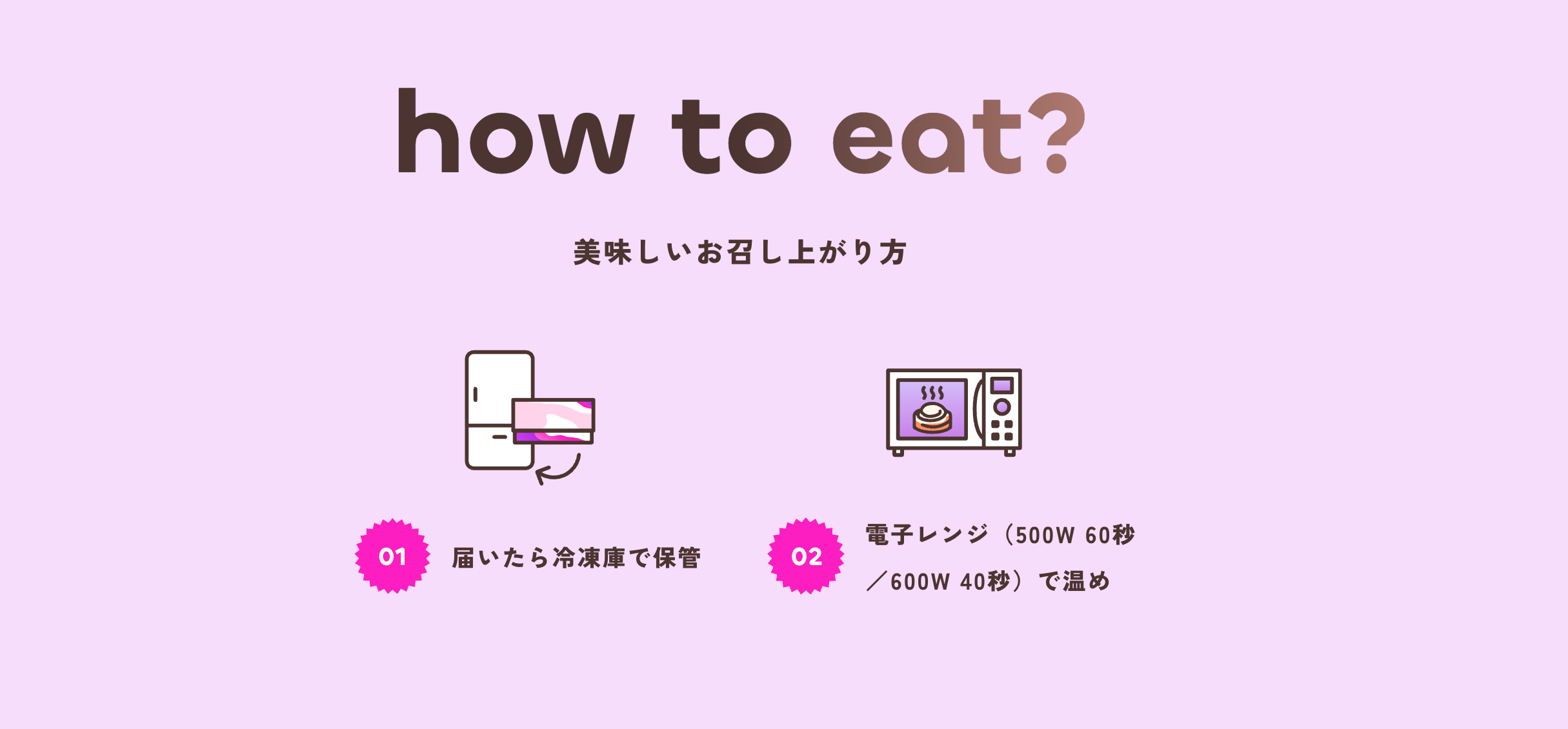 解凍後、電子レンジ(500W 40秒/600W 25秒)で温めていただくと、より美味しくお召し上がりいただけます。