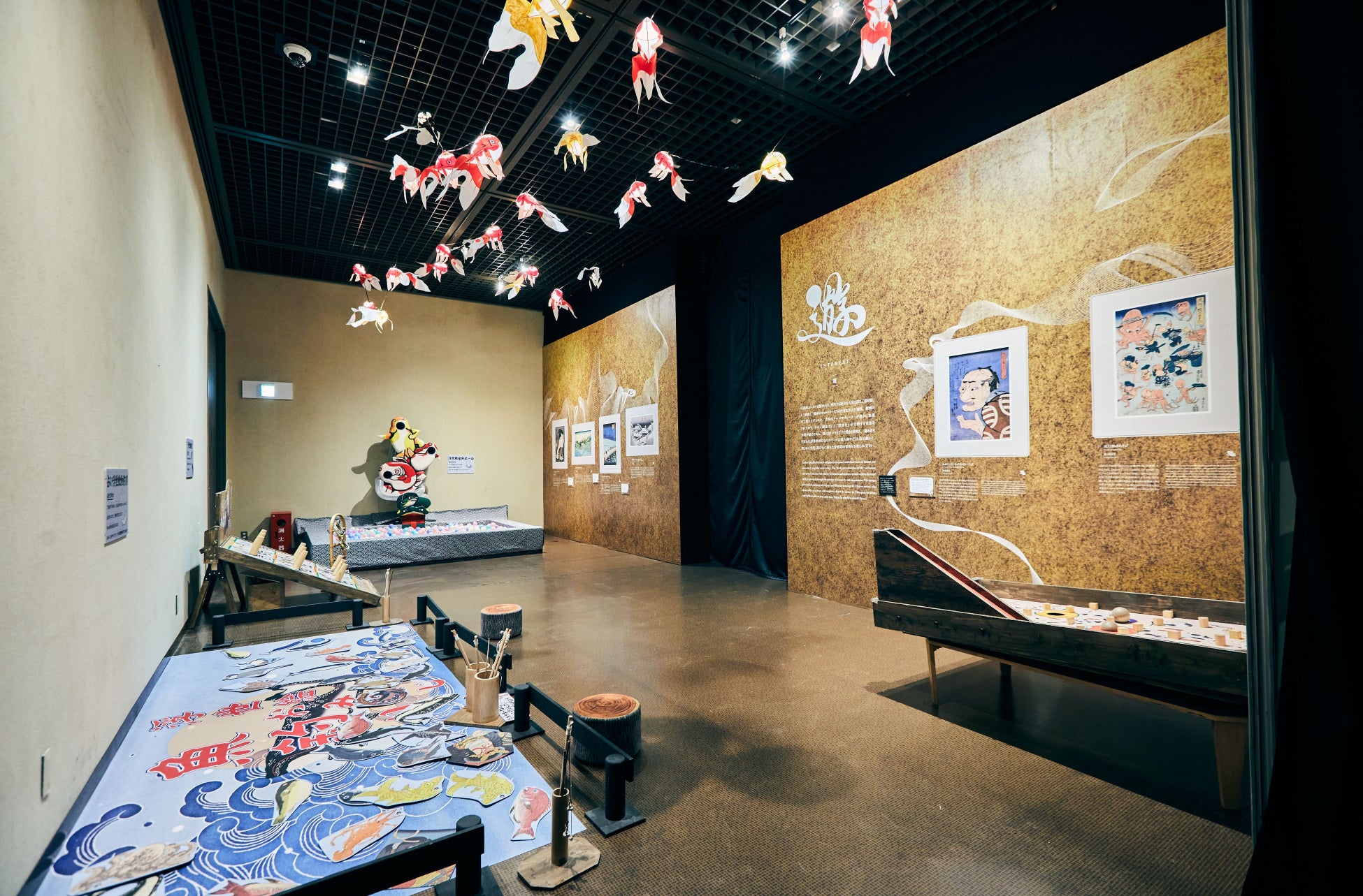 浮世絵展第八幕のテーマは「豪」。歌川国芳の水滸伝シリーズをはじめとする、武者絵や相撲を題材にした豪快な中にも繊細さがあり、荒々しいエネルギーを放出する浮世絵をダイナミックに魅せる空間。