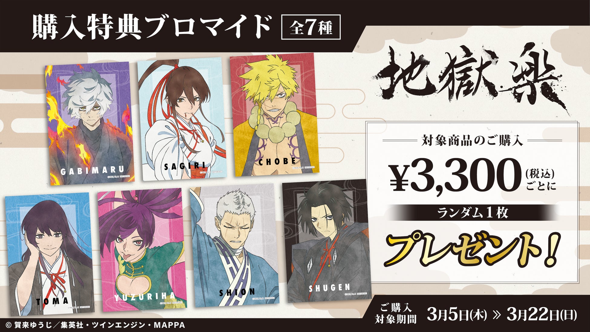 TVアニメ『地獄楽』より和風な水彩画アレンジの新規オリジナルグッズが「Aniqueショップ」にてEC販売決定!