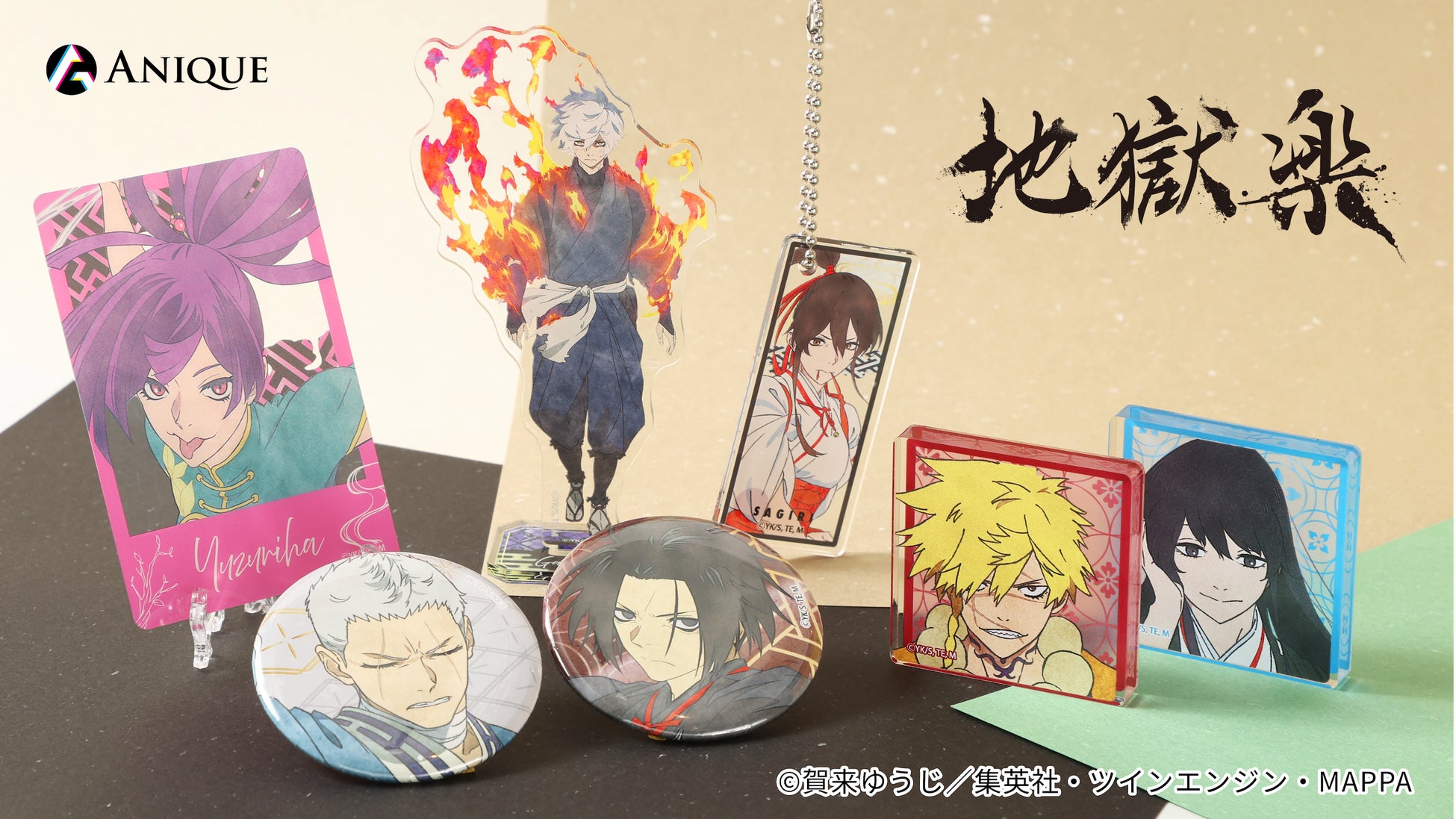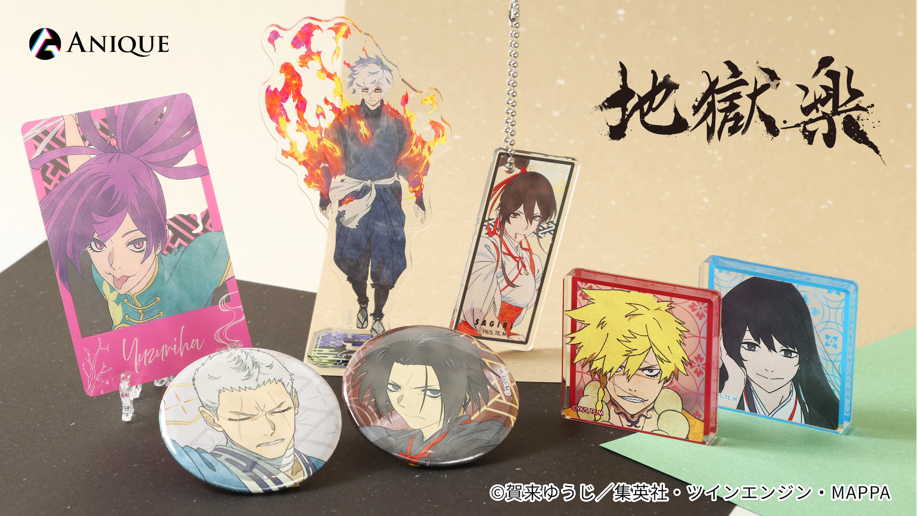Anique株式会社(本社:東京都千代田区、代表取締役:笠井高秀)は、同社が運営するサービス「Aniqueショップ」にて、TVアニメ『地獄楽』新規オリジナルグッズを予約販売いたします。