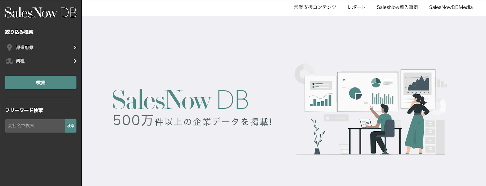 「SalesNow DB」は、日本全国500万社以上の企業情報を網羅した日本最大級のデータベースです。