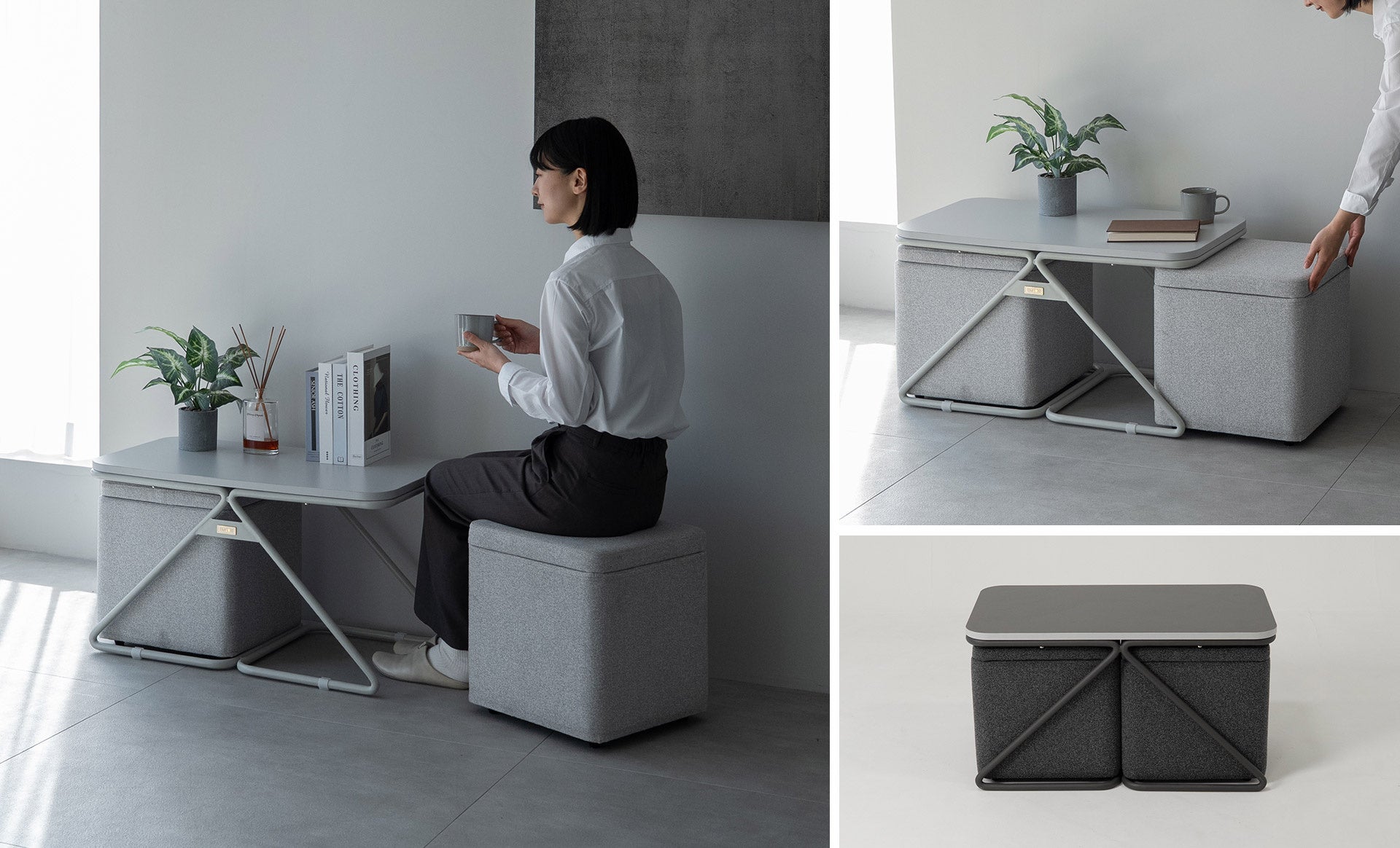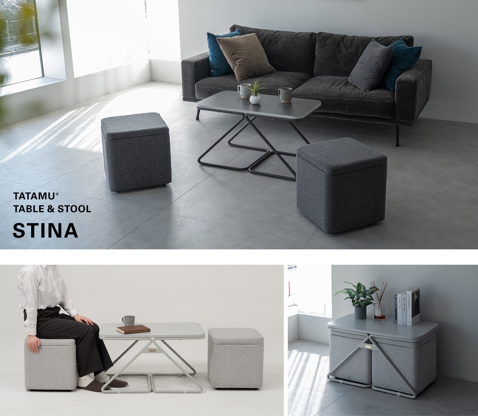 「しまう」をさらに「しまう」まるでマトリョーシカ。トランスフォーム家具ブランドTATAMU®から、収納付きスツール&スツールを美しく格納できるテーブルセット『STINA(スティナ)』が新登場!