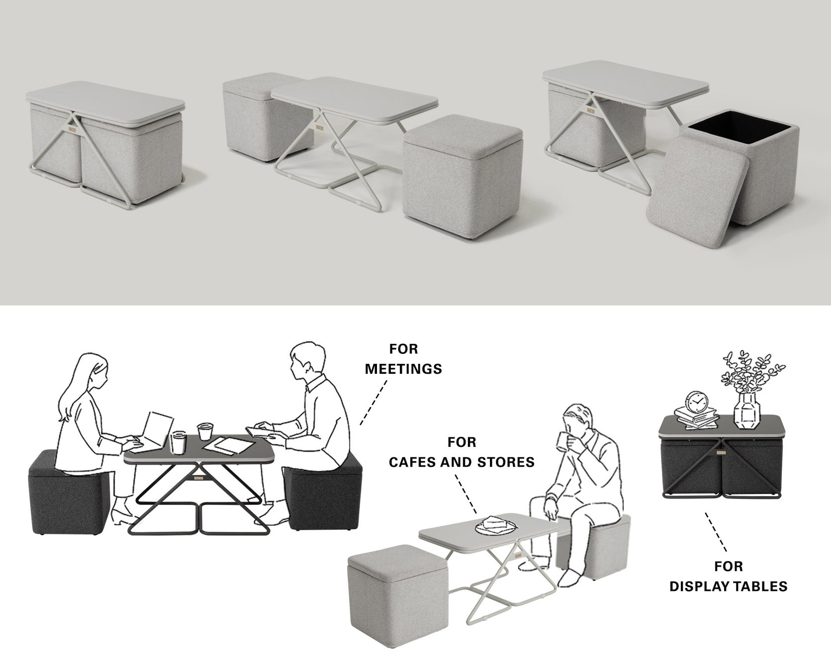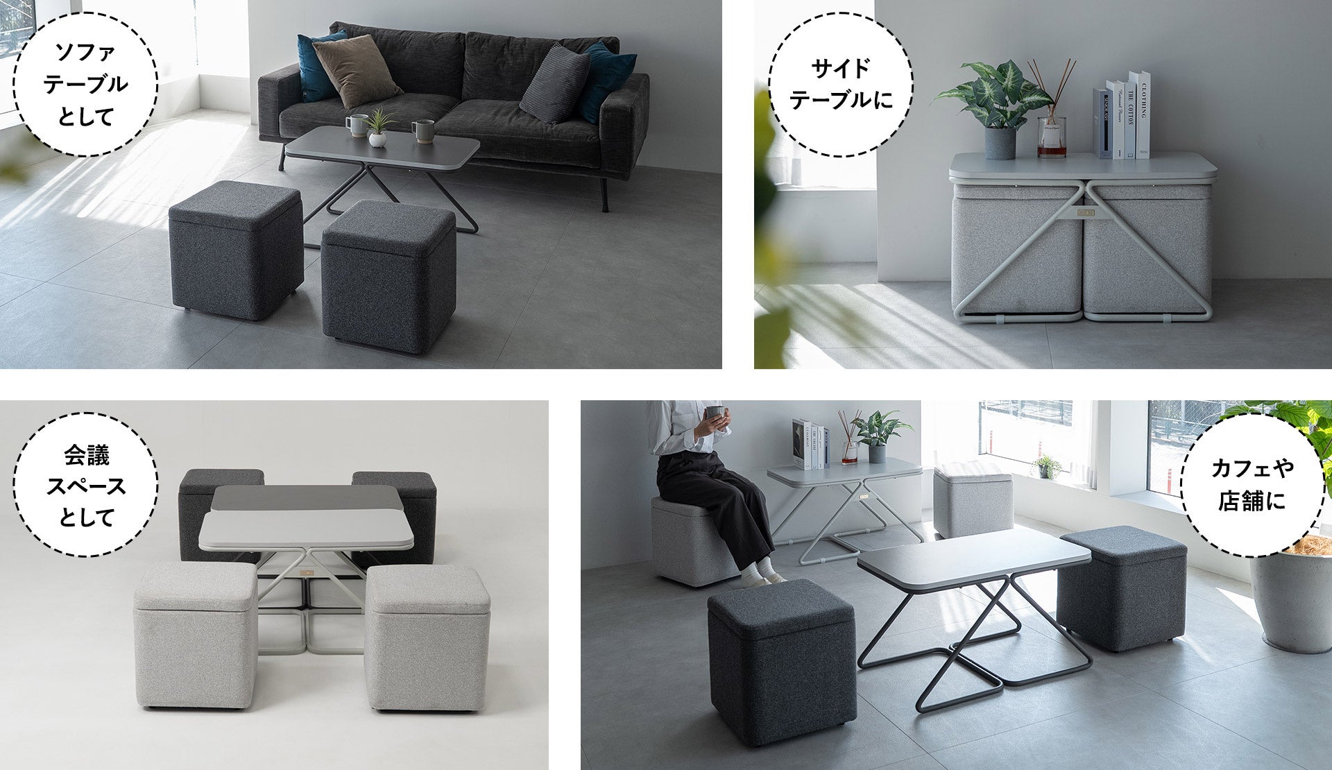 トランスフォーム家具ブランドTATAMUⓇから、“しまう・座る・集まる”を一台で叶えるテーブル&スツール『STINA(スティナ)』が新発売。ホームユースだけでなくオフィスや店舗でもオススメです。