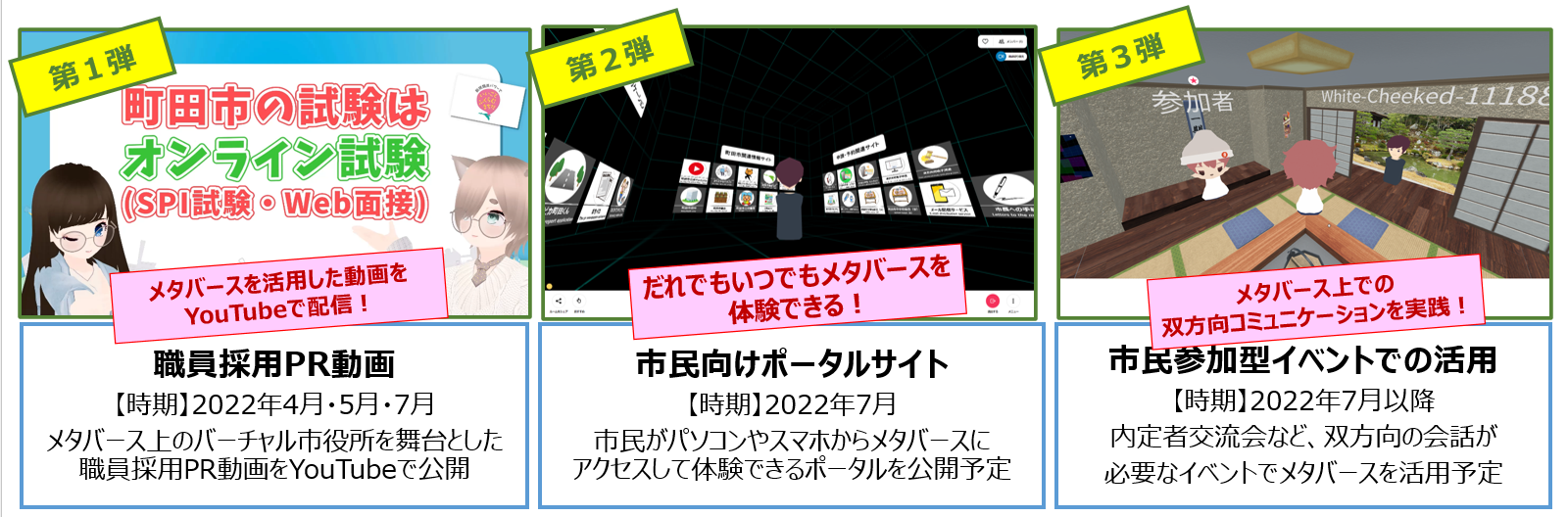 東京都町田市では、アバターを使った職員採用PR動画を作成するなど、メタバース(インターネット上の仮想空間)を活用した取り組みを行っています。この取り組み事例が、東京都主催の「Tokyo区市町村DX賞」を受賞するとともに、内閣官房主催の「夏のDigi田甲子園」東京都代表に選出されています。