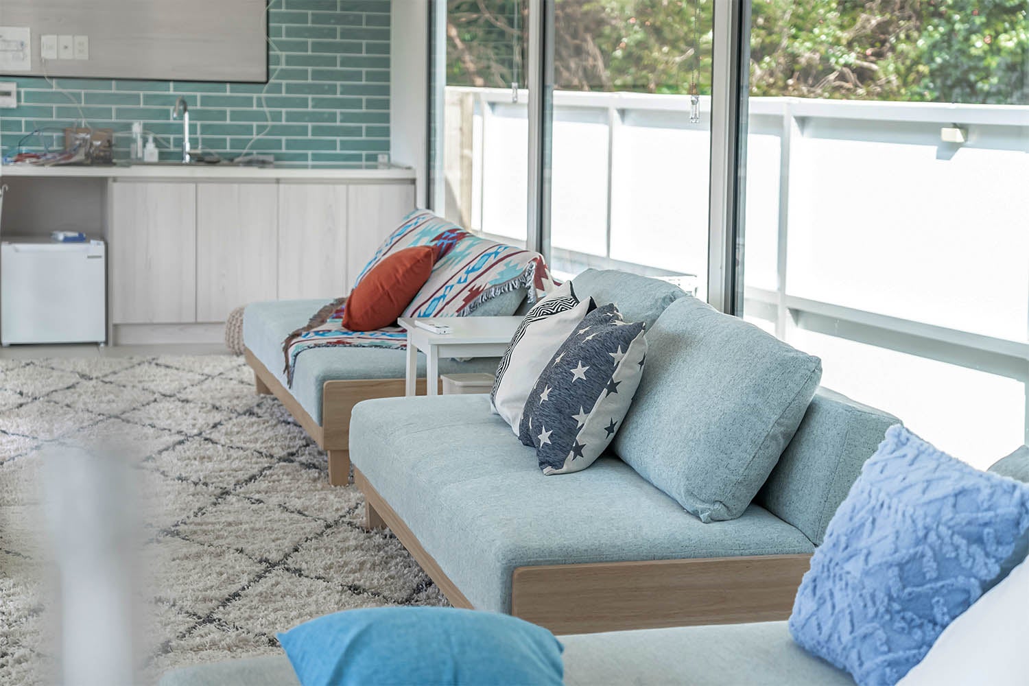 ②1日2組限定。自然美と調和する大胆なデザインの客室で贅沢な宿泊
