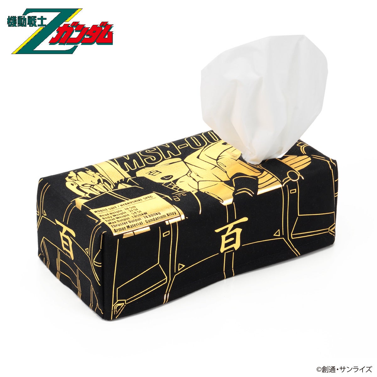 『機動戦士Zガンダム』百式のとりもちランチャーをティッシュで再現!ゴールドの箔プリントを使用した豪華なデザインのティッシュケースが登場!