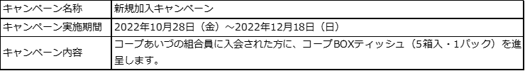 また、2022年10月28日(金)から2022年12月18日(日)まで、コープあいづの組合員「新規加入キャンペーン」も実施します。