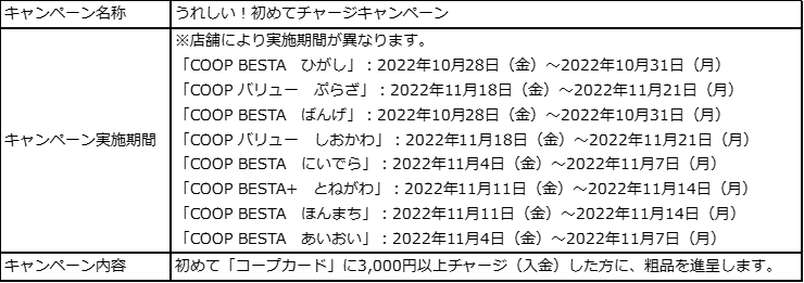 ・対象店舗:「COOP BESTA」「COOP バリュー」8店舗