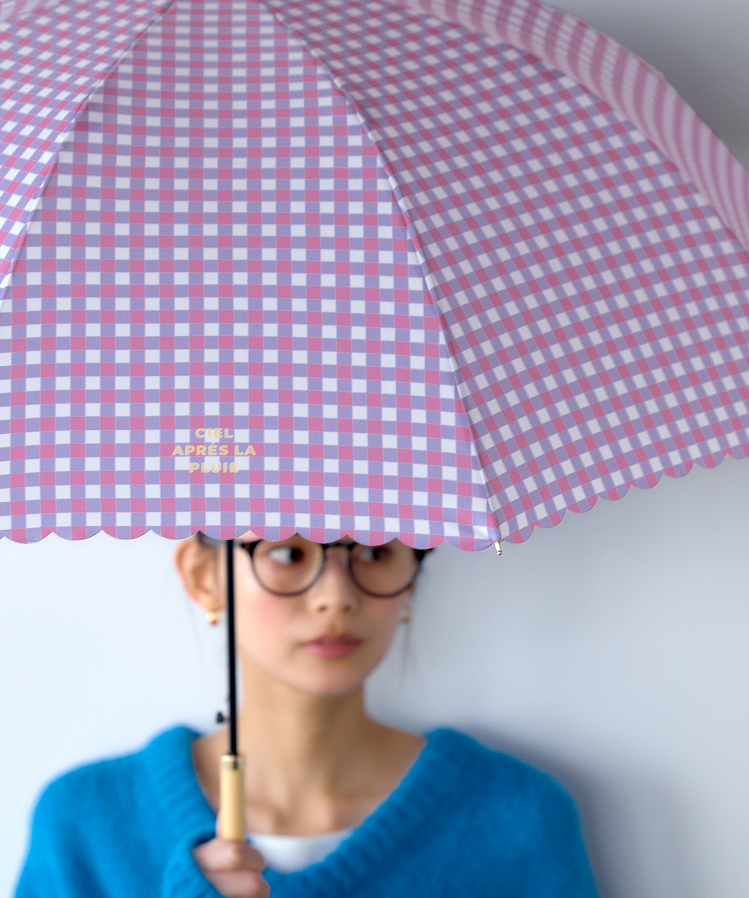 バイカラーのポップな色使いが”レトロ可愛い”1本。折りたたみ傘のケースは巾着タイプになっており、リボンの配色にもこだわっています。傘本体や傘ケースにはフランス語で「雨上がりの空」とプリントされているのもなんだかロマンティック。