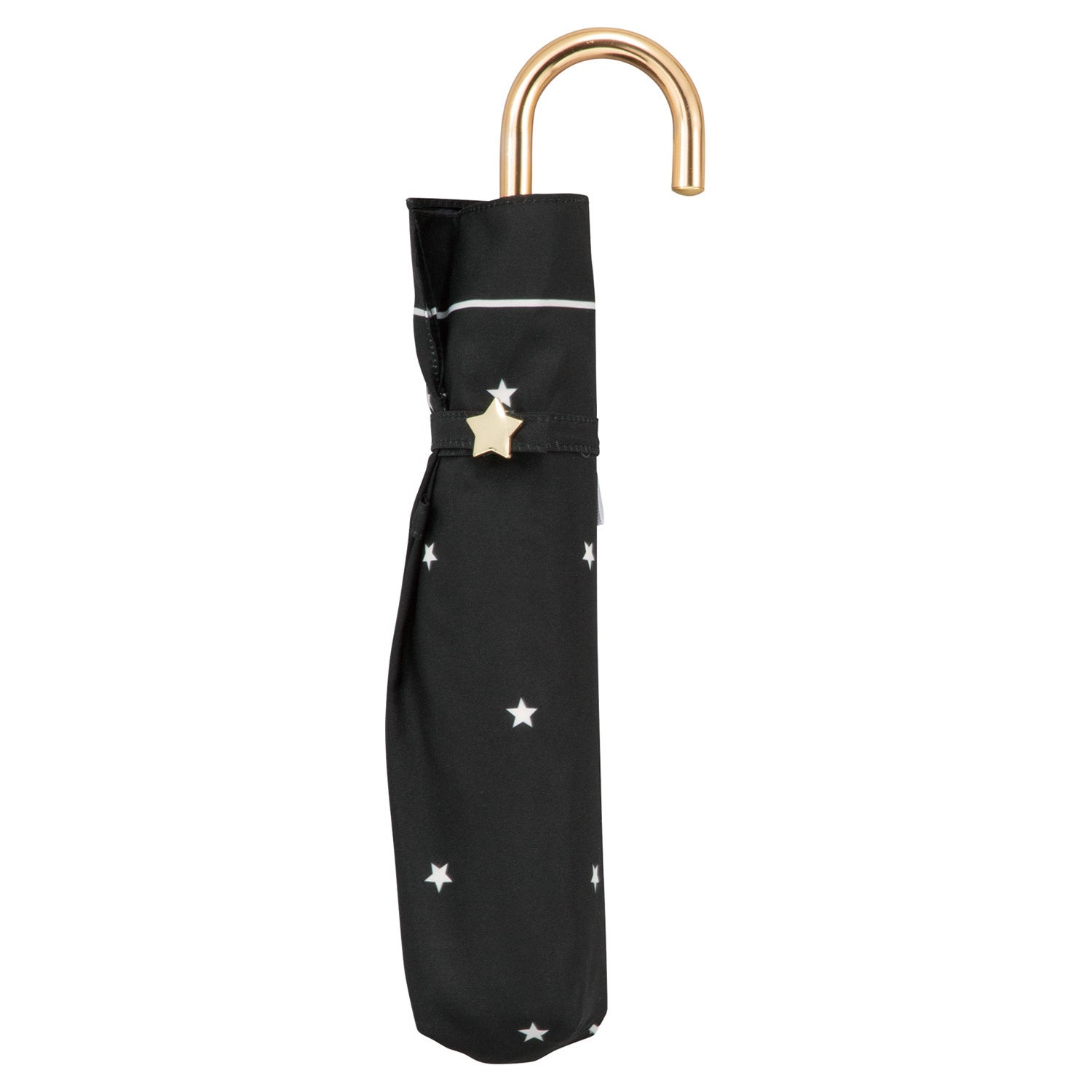 散りばめられた小さな星と傘を縁取るラインがスタイリッシュ。長傘の留め具と折りたたみ傘のケースの留め具にはきらりと輝く星のボタンが付いています。