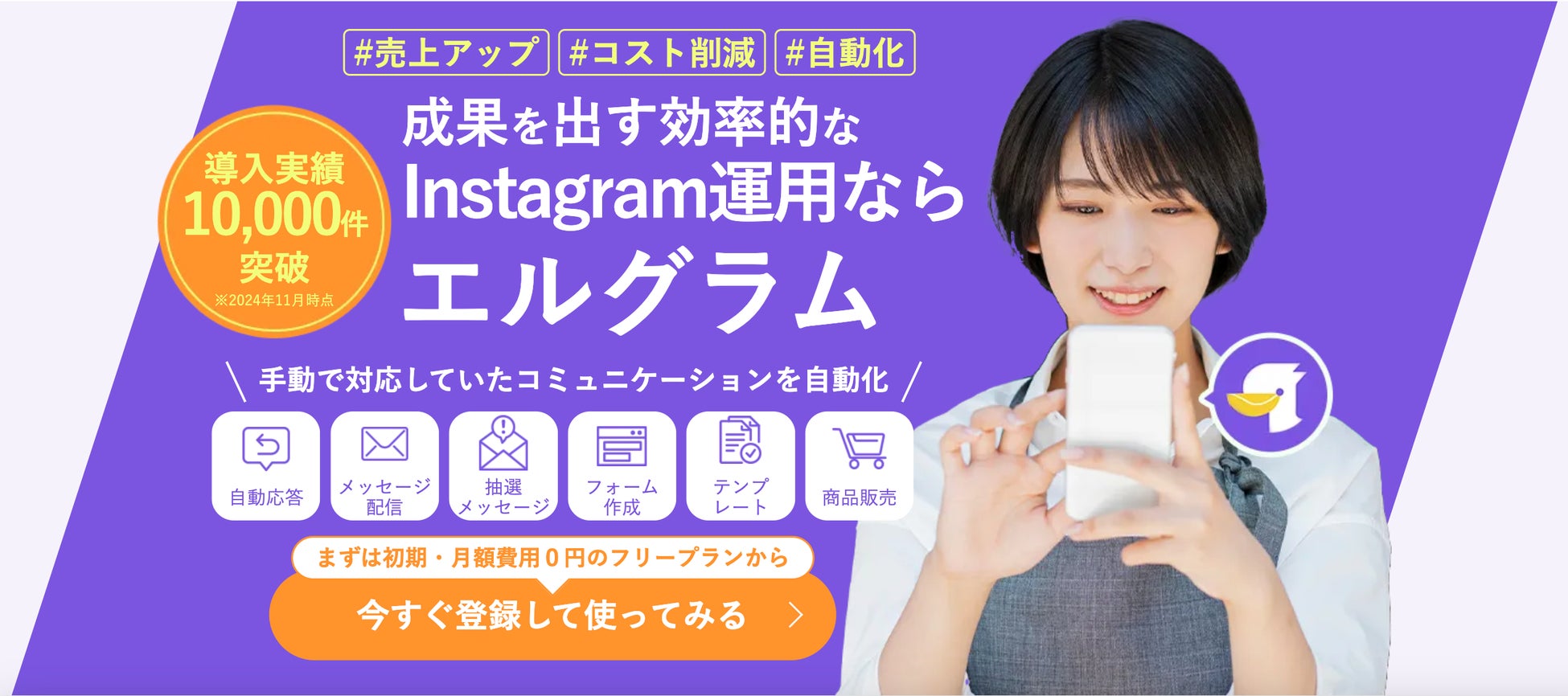 当社が提供するInstagram自動化ツール「エルグラム」は、2024年11月時点で10,000件を超える導入実績を達成いたしました。