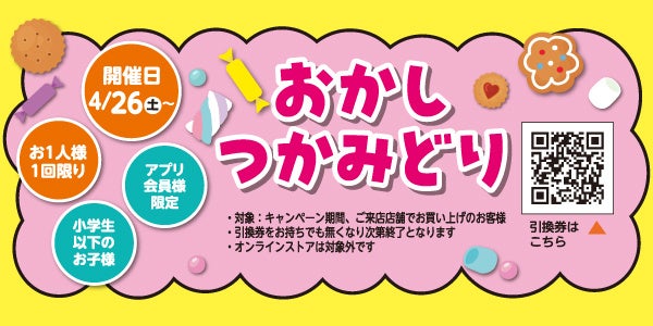 ■ 4/26(土)は「お菓子つかみどり」のイベント開催!(各店舗先着順)