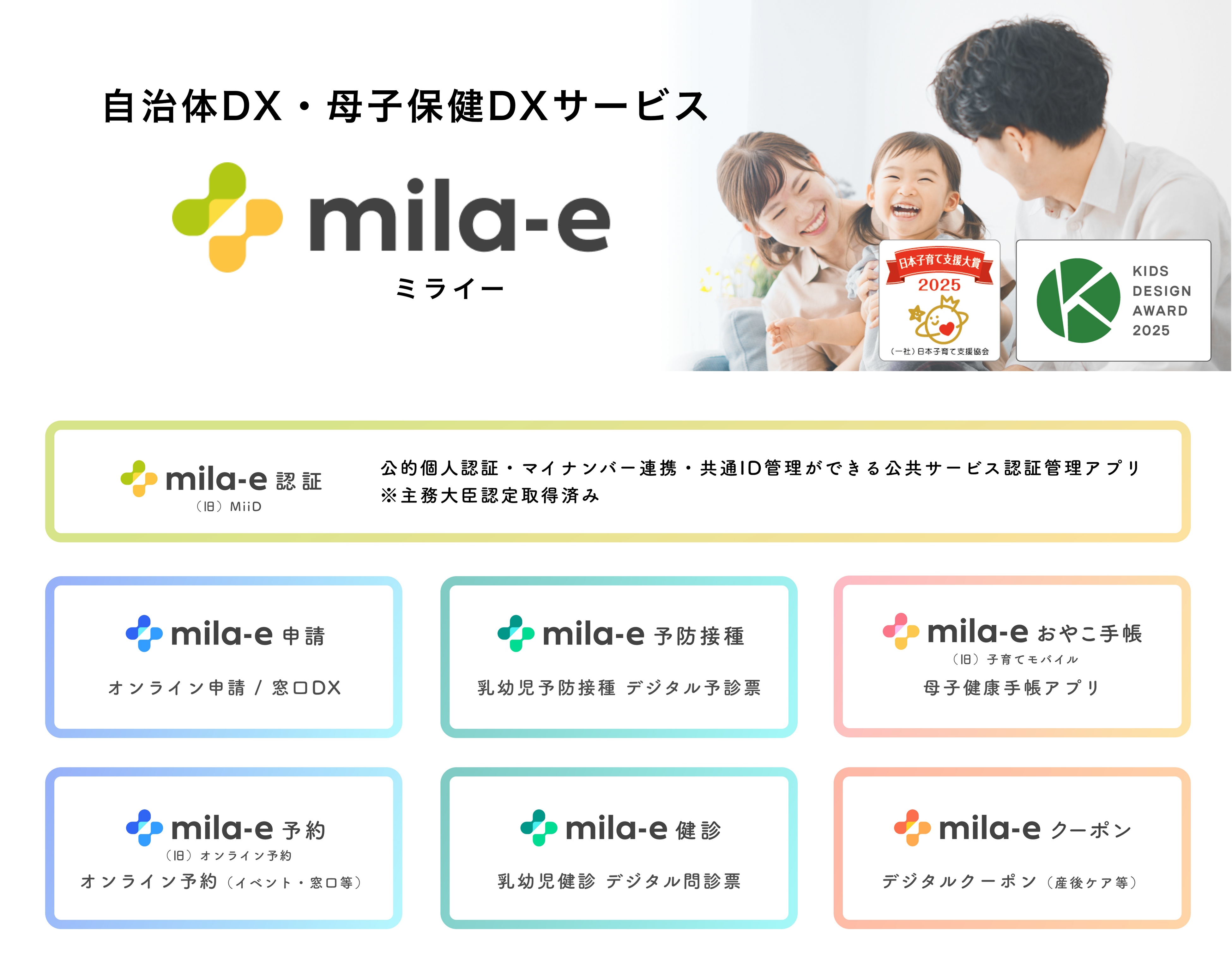 そのほか、展示ブースでは、2025年度日本子育て支援大賞 および キッズデザイン賞を受賞した 自治体DX・母子保健DXサービス「mila-e」シリーズを中心に、母子手帳アプリ、オンライン予約、デジタル予診票・問診票、デジタルクーポン、公的個人認証サービス、窓口DXサービス、障害者支援アプリなど、自治体DX・母子保健DXサービスをご紹介します。