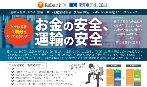 【中小運輸業経営者・後継者限定】ReBank✕東海電子ワークショップ「お金の安全、運輸の安全」8月28日(水) 無料開催のお知らせ