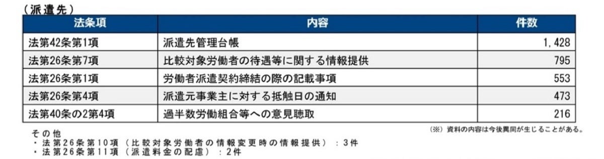 *1: 主な労働者派遣法違反条項(令和4年度)厚生労働省発表