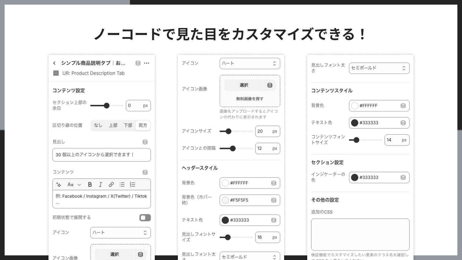 ■ ノーコードで商品説明タブ(アコーディオン)を追加できる!