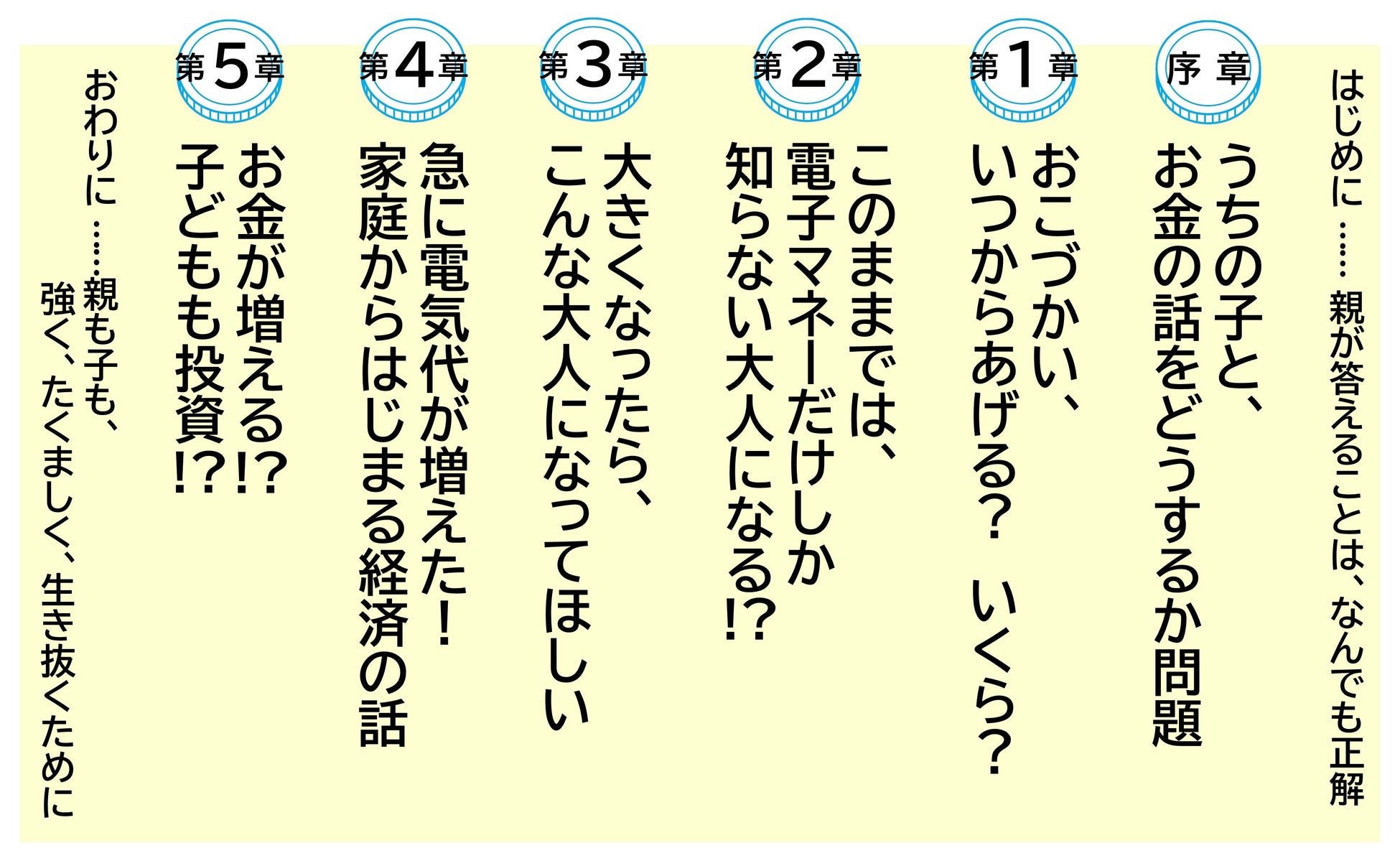 「おこづかいはいつから渡す? いくらくらい?」「ゲーム課金についてどんなルールにしたらいいですか?」「投資って子どもにどうやって教えればいいの?」…。