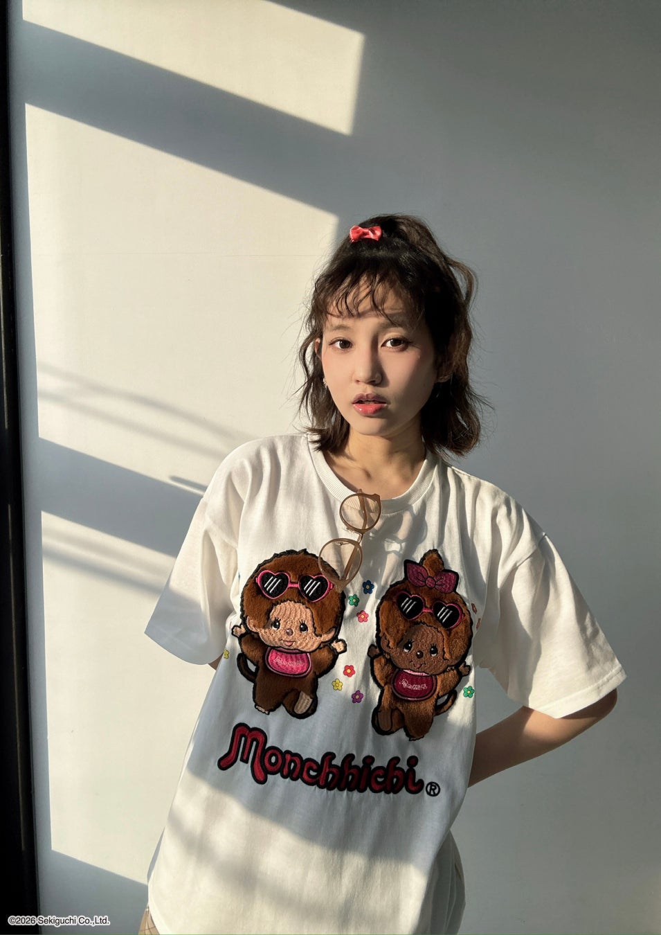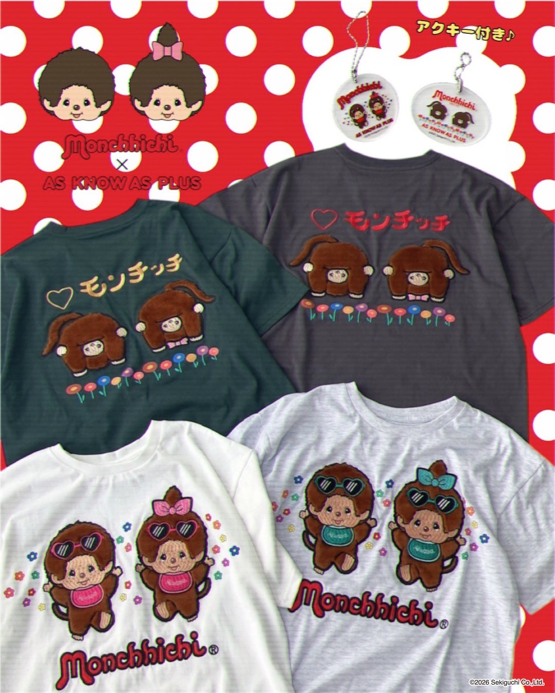 『 モンチッチくん 』と『モンチッチちゃん』がふわふわにデザインされたアクキー付きTシャツがAS KNOW AS plusから登場☆