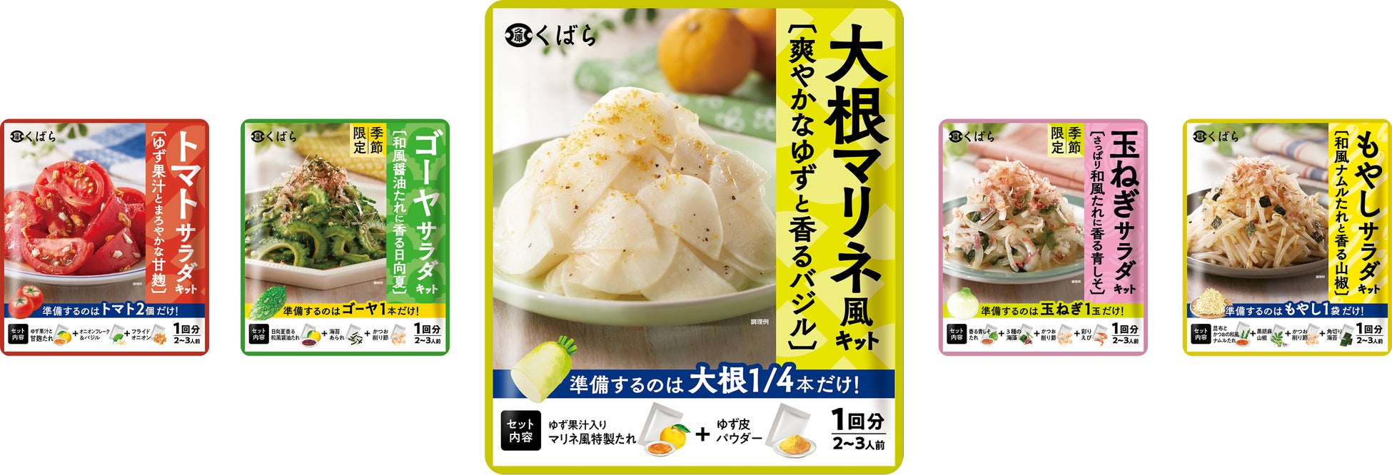 この度、節目の年を迎えるにあたり、定番野菜である“大根”を主役にした『大根マリネ風キット』を新たにラインナップに加え、『選びやすさ』をコンセプトに全商品のパッケージデザインをリニューアルいたします。