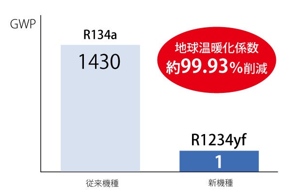 一環として、冷媒はノンフロンのR1234yf(GWP:1)を採用。